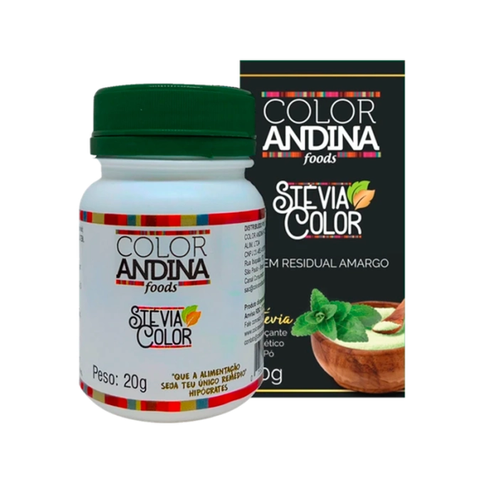 O adoçante Stévia da COLOR ANDINA é um verdadeiro presente da Natureza! 100% natural, sem sabor residual amargo ou retrogosto, zero açúcares e alto teor adoçante, sendo 300 vezes mais doce que o açúcar convencional. Pode ser usado em sucos ou bebidas quentes, como também na culinária, em forno ou fogão, até 200Cº.