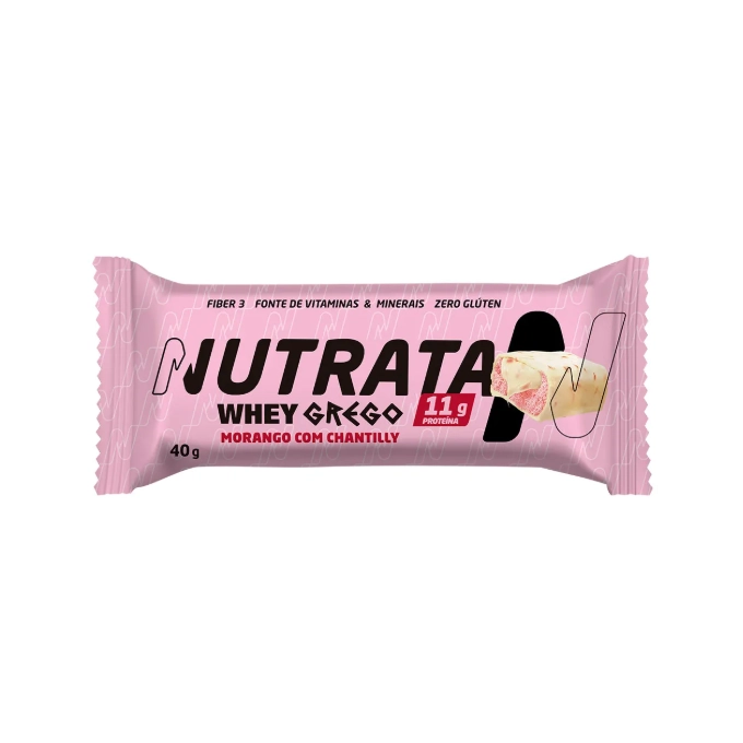 Blend proteico (caseinato de cálcio, proteína concentrada de leite, proteína de soro do leite concentrada, proteína de soro do leite isolada e colágeno hidrolisado), cobertura de chocolate branco, recheio cremoso sabor chocolate branco, óleo de palma (Elaeis guineenses), iogurte natural integral em pó, polidextrose, frutooligossacarídeos, Fiber 3® [Inulina - fibra da raiz da chicória, goma de acácia purificada e goma guar parcialmente hidrolisada], goma acácia, morango desidratado, vitaminas (acetato de retinol, colecalciferol, cloridrato de piridoxina, ácido fólico e cianocobalamina), minerais (sulfato de zinco, selenito de sódio e picolinato de cromo), aromatizantes, cloreto de sódio, edulcorantes sorbitol e maltitol, umectante glicerol, antiumectante fosfato tricálcico, emulsificante lecitina de girassol, conservantes sorbato de potássio e benzoato de sódio, antioxidante dl-alfa-tocoferol, corantes vermelho allura AC e carmins.