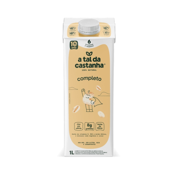 O Completo é uma bebida vegetal desenvolvida para oferecer nutrição prática e completa em qualquer momento do dia. Feito com proteína de arroz e ervilha, castanha-de-caju e aveia sem glúten, é fortificado com cálcio, magnésio, zinco, vitamina D, vitamina B12 e ácido fólico. Com 8g de proteína por porção, fibras alimentares e baixo teor de açúcares e gorduras, é 100% vegetal, sem lactose, sem glúten e sem colesterol, ideal para quem busca equilíbrio, sabor e versatilidade na rotina.