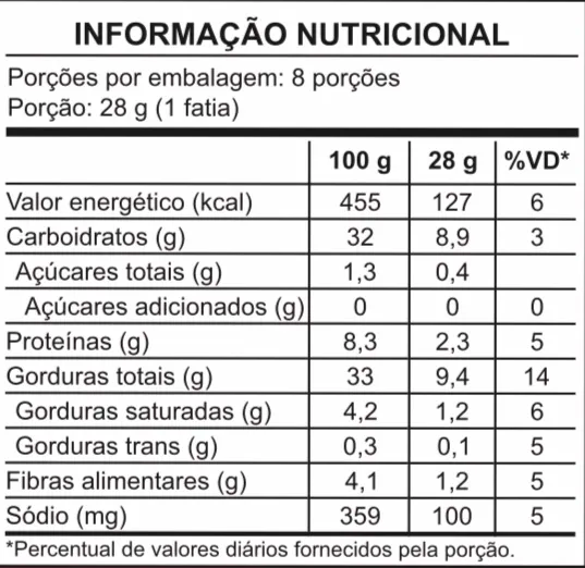 Aveia em flocos sem glúten, farina de arroz, fécula de mandioca, óleo de girassol, ovos farinha de maçã, açúcar de tâmara, farinha de linhaça, fermento químico, amido modificado, canela em pó, espessantes goma xantana, goma guar, emulsificante ésteres de mono e diglicerídeos com ácidos graxos, umectatante sorbitol, conservantes ácido ascórbico, sorbato de potássio, ácido cítrico, carbonato de cálcio e propionato de sódio.