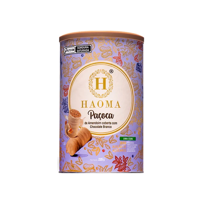 PAÇOCA COM CHOCOLATE BRANCODelicada e única, nossa paçoca coberta com chocolate branco é perfeita para quem busca uma experiência suave e surpreendente, mantendo a autenticidade e a qualidade Haoma em cada detalhe. Sem adição de açúcar e adoçada com stevia, é o sabor ideal para alegrar o dia a dia.