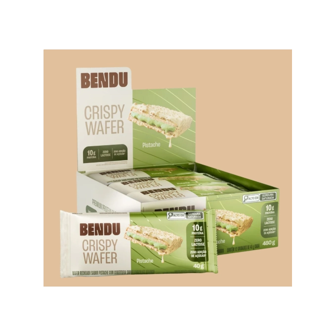 Mix Proteína: (proteína concentrada do soro de leite zero lactose, colágeno hidrolisado, clara de ovo em pó, ovo em pó e proteína isolada de fava), gordura vegetal, leite integral zero lactose, Wafer: (farinha de trigo enriquecida com ferro e ácido fólico, óleo vegetal de soja, sal refinado),farinha de arroz, fibra solúvel: (polidextrose), fécula de batata, amido de milho, pasta integral de pistache, sal, edulcorantes: (maltitol e stevia), emulsificantes: (lecitina de soja e poliglicerol polirricinoleato), corante: clorofilina cúprica (sais de potássio e sódio), aromatizantes, fermento químico: (bicarbonato de sódio) e antioxidante: (vitamina E - tocoferol). CONTÉM GLÚTEN. NÃO CONTÉM LACTOSE. ALÉRGICOS: CONTÉM PISTACHE, OVO E DERIVADOS DE LEITE E SOJA. PODE CONTER: AMÊNDOAS, AVELÃ, CASTANHA-DE- CAJU E AMENDOIM.