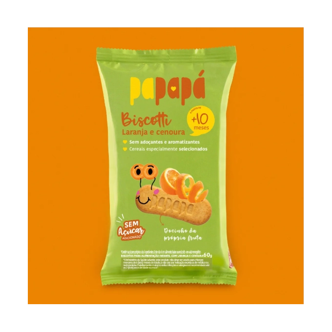 Adocicado pela própria fruta, com uma textura macia e formato anatômico para as mãozinhas dos bebês, o Biscotti é uma opção saudável de lanche para oferecer sem culpa aos pequenos, a partir de 10 meses. A linha é feita com cereais selecionados, fibras naturais além disso é: