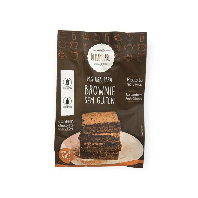 Mistura para brownie 450g, sem glúten e sem leite/lactose. Leva chocolate 50% cacau em sua composição.