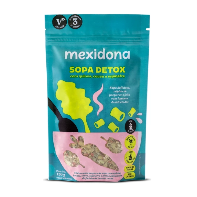 Se você quer um jantar leve, prático e que ajude a reduzir a retenção de líquidos, a Sopa Detox Mexidona é perfeita para você! Com ingredientes naturais como quinoa, couve, espinafre e macarrão sem glúten de farinha de banana verde, essa sopa é rica em fibras solúveis e insolúveis, que promovem saciedade, regulam o intestino e ajudam o organismo a eliminar as toxinas.