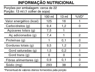 Água, mostarda americana amarela (Heinz), mel, azeite de oliva extravirgem, vinagre de maçã, vinagre de álcool, mostarda amarela em grãos, mostarda preta em grãos, mostarda amarela moída, sal rosa, cúrcuma, pimenta caiena e espessante goma xantana e edulcorante stevia.
