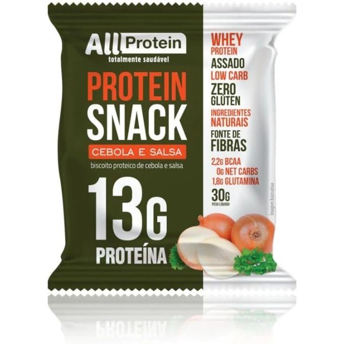 Surpreenda-se com a combinação única de sabor, qualidade e praticidade do Protein Snack de Cebola e Salsa da All Protein! Este lanche proteico é a escolha ideal para quem deseja saborear uma refeição deliciosa e nutritiva, sem abrir mão de um estilo de vida saudável e equilibrado.