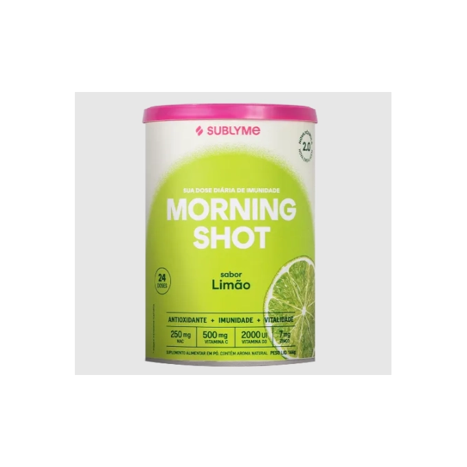 MORNING SHOT LIMÃOO Morning Shot é um shot matinal para suplementar a alimentação ao longo do dia. Sua fórmula é repleta de vitaminas, nutrientes e minerais, selecionados por profissionais de saúde. A vitamina C, a vitamina D, o selênio e o zinco auxiliam no funcionamento do sistema imune. Além deles, o Morning Shot contém outros ativos com diversos benefícios, são eles: vitamina E, glutamina, NAC, vinagre de maçã em pó, beta glucana, extrato de própolis, glicina, gengibre, pimenta preta e limão em pó.