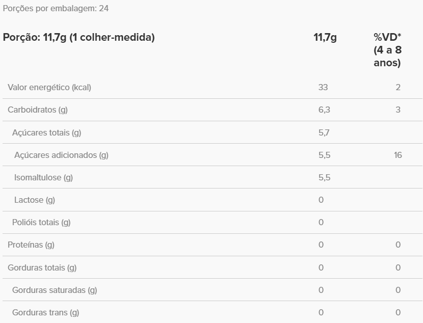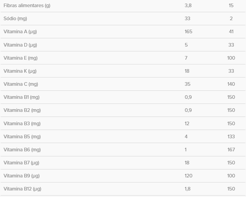 TABELA NUTRICIONAL